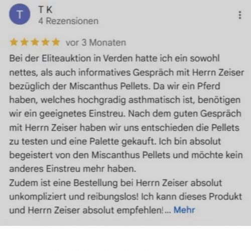 Was sagen Pferdehalter über unsere Miscanthus-Einstreu und unsere Service?